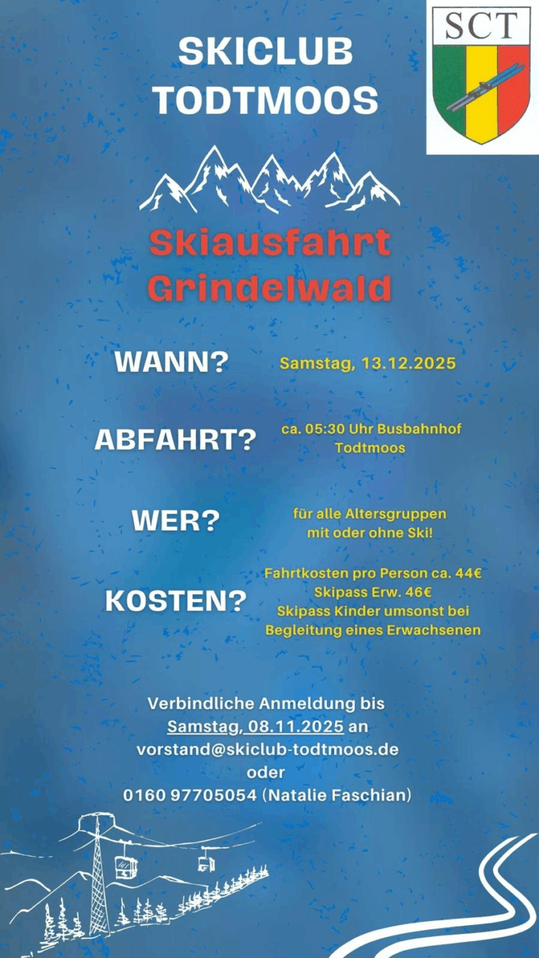 Liebe Skiclubmitglieder, am Freitag, den 10.Oktober 2025 um 19.30 Uhr findet unsere Mitgliederversammlung im Schwarzwaldhotel in Todtmoos – Weg statt. Hierzu laden wir Euch herzlich ein.